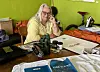 Dass鈥 canvas works combine oils, papers and leather hide to simulate the landscapes of the Gila region. She encourages visitors to touch her works.