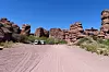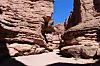 In two miles the road will jog to the right (north) and enter the San Lorenzo Canyon arroyo. At this point the arroyo is broad, flat and usually very dry. Just follow the roadway in the arroyo west, but don鈥檛 enter if the arroyo is flowing. You鈥檒l see a stand-alone mesa, 1.75 miles later, with an unusual angular unconformity on the right-hand side of the arroyo. This is the first of many wonderful formations that you鈥檒l see on this adventure. It only gets better from here.