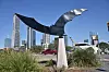 Just in case you forget why you are visiting Lady Bird Lake, there is a massive sculpture of a bat, black as a moonless night. Wind-driven “Nightwing,” by Dale Whistler, has been rotating near the south end of the Congress Avenue Bridge since 1998. It has been honored as the city’s favorite public sculpture. It was commissioned by the Downtown Austin Alliance and it shows how people who disagree about the nature of bats can still be friends.